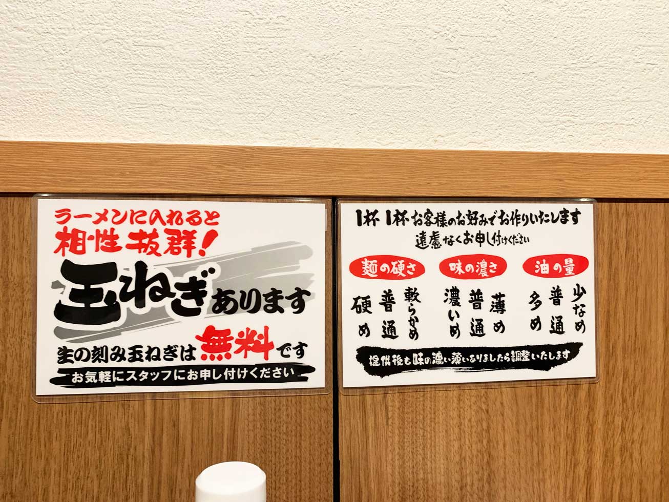 横浜家系ラーメンのお店であれば定番となっているラーメンの好み(麺の硬さ・味の濃さ・油の量)を選択できるようになっていました。